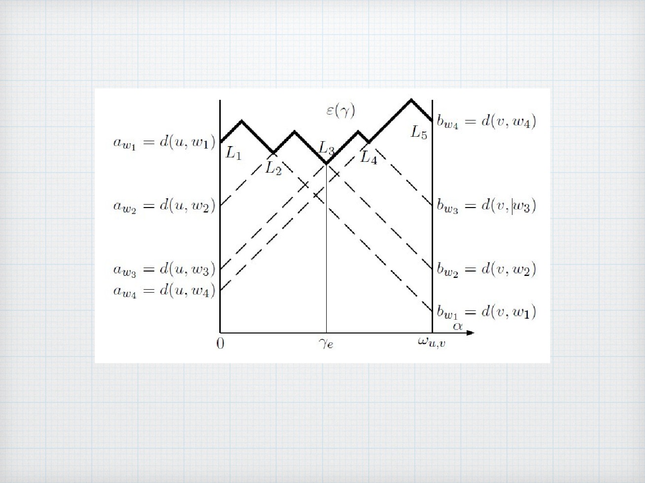 示为min(d[u][s] + x, d[v][s]+L-x),数形结